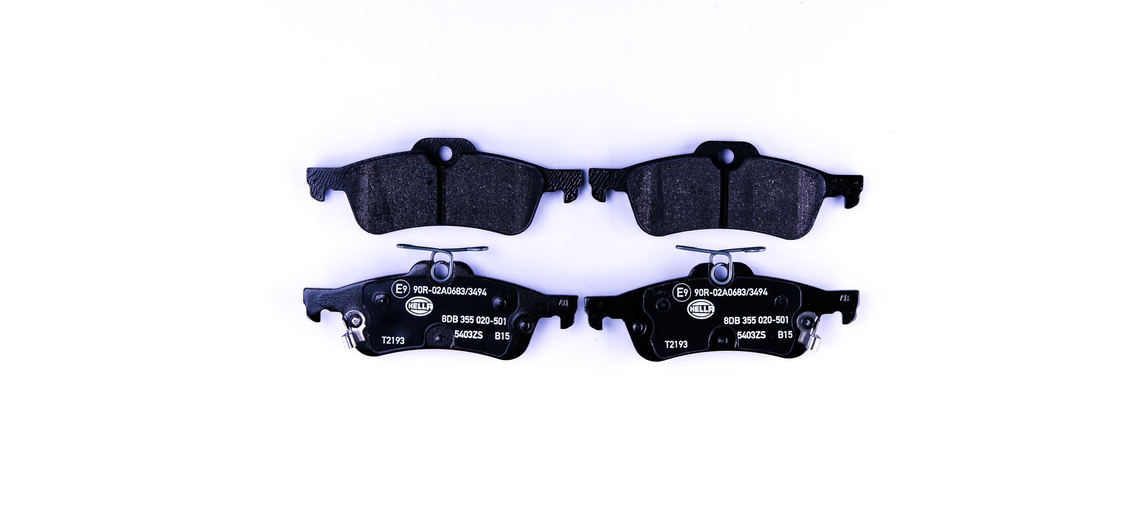 HELLA Bremsbelagsatz, Scheibenbremse 8DB 355 020-151 hinten rechts links mit Zubehör für MAZDA (CHANGAN) AMC 8837D1624 K0Y12648Z K0Y12648ZC