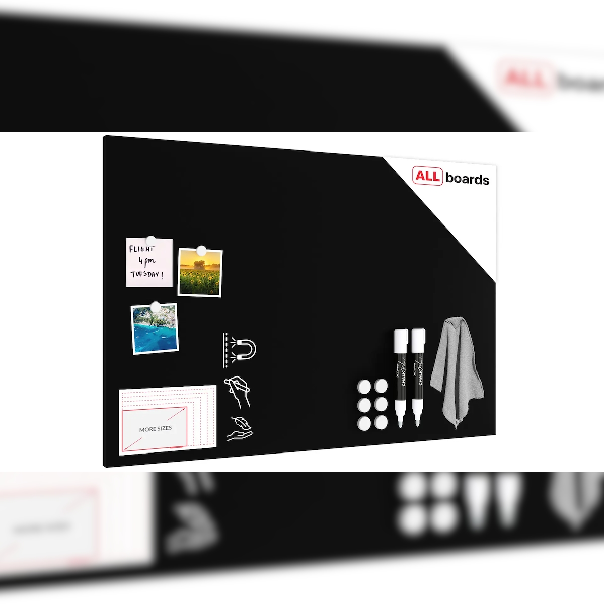 ALLboards Metallische Magnettafel KREIDETAFEL SCHWARZ 90x60cm Memoboard für jede Art von Magneten + 6 Tafelkreide, 10 Magnete und Schwamm