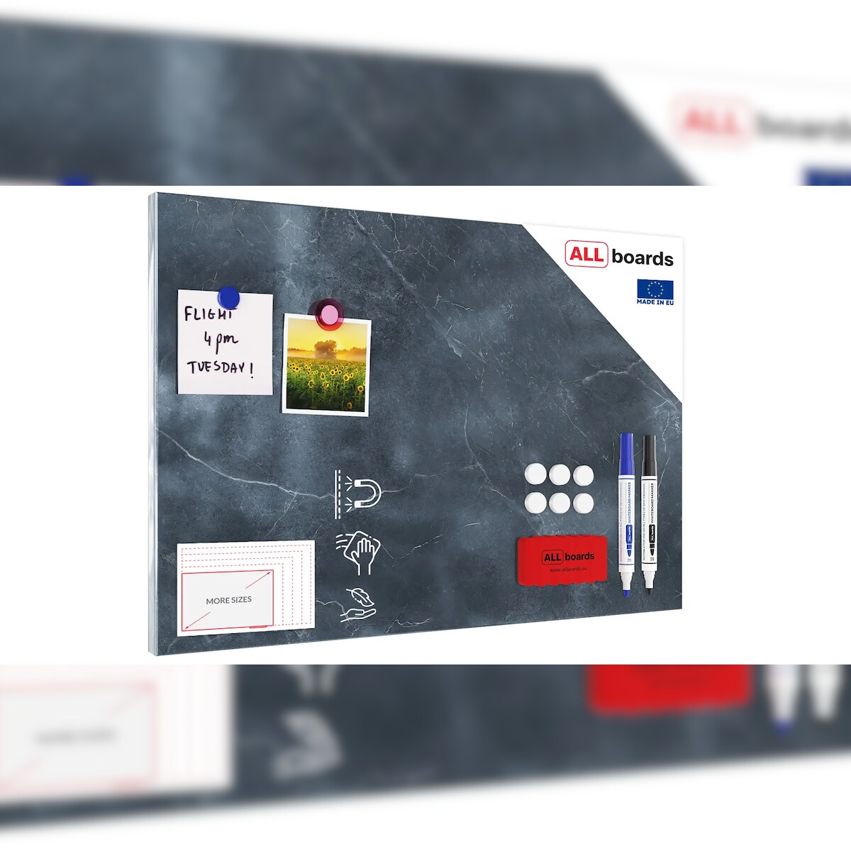 ALLboards Metallische Magnettafel HELLER BETON 60x40cm Memoboard für jede Art von Magneten Magnetpinnwand + 4 Marker, 10 Magnete und Schwamm