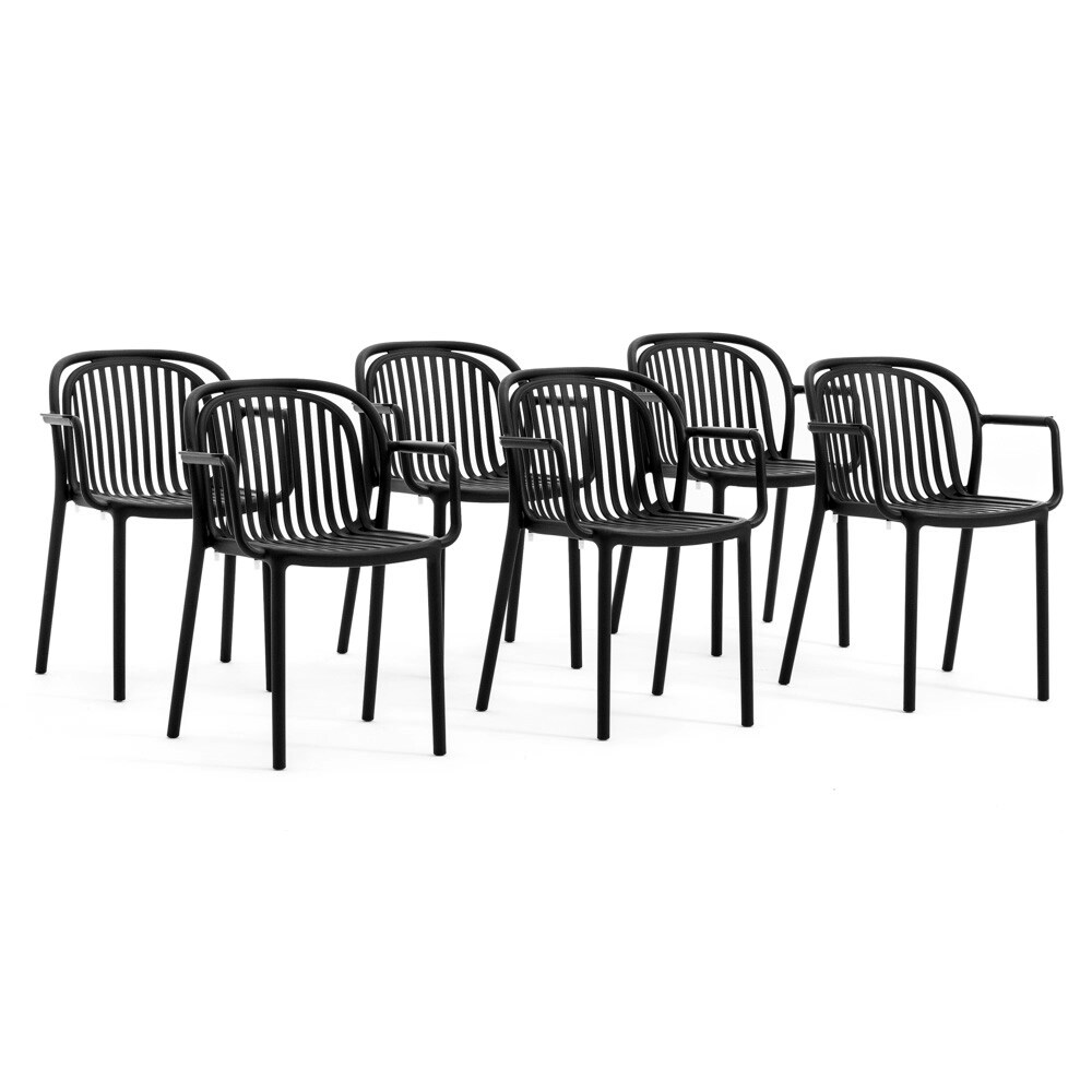 RATTATAN Set aus 6 Stühlen mit Armlehnen aus harzverstärktem Glasfaserharz,modernes Design,stapelbar für Garten,Bar,Restaurant,Küche–Eloisa–Schwarz