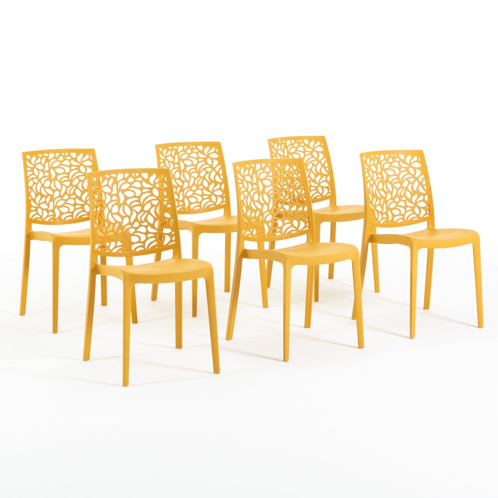 RATTATAN 6er-Set stapelbare Stühle aus Polypropylen mit Glasfasern für Außenbereich und Garten, Bar und Restaurant, Küche modernes Design - ANNA - Senfgelb