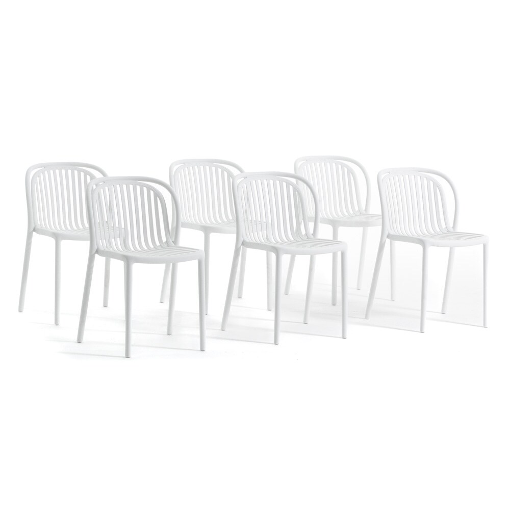 RATTATAN Set aus 6 Stühlen aus harzverstärktem Glasfaserharz,modernes Design,stapelbar für Außenbereich,Garten,Bar,Restaurant,Küche–Eloisa–Weiß