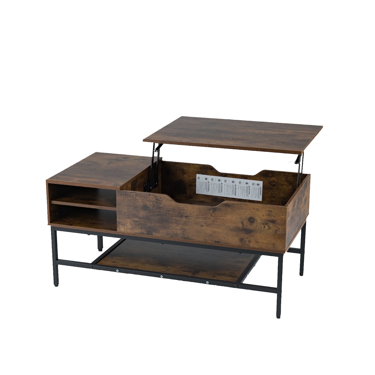 COSTWAY Höhenverstellbarer Couchtisch, Wohnzimmertisch mit offenem Fach und Stauraum, 100 x 49,5 x 47,5 cm(Rustikales Braun)