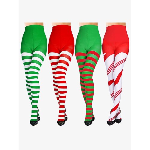 collant a righe natalizie da donna a forma di bastoncino di zucchero – calze festive per feste e cosplay
