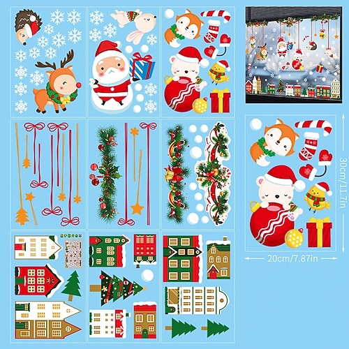 9 fogli di adesivi murali natalizi per finestre, decorazioni, alberi di Natale, pupazzi di neve fiocchi di neve, elettricità statica, vetrina decorazioni in vetro per la casa