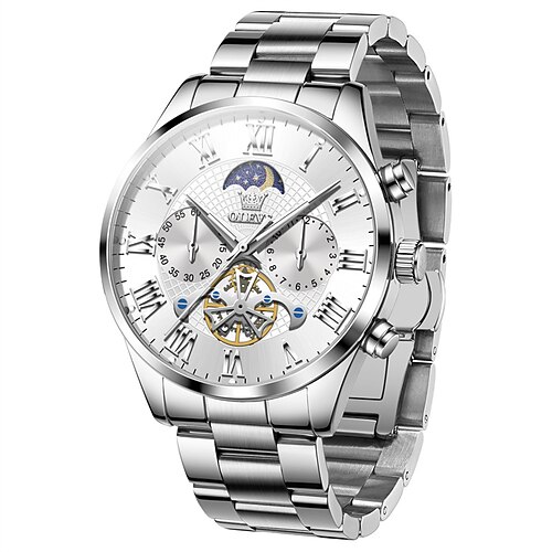 Nuovo orologio da uomo business del marchio olevs con luce notturna, calendario, piccoli quadranti secondari, indicatore delle fasi lunari. Orologio da uomo alla moda con cinturino in acciaio