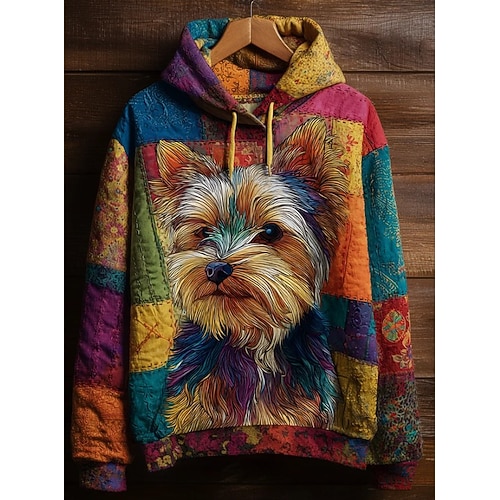 Per donna Felpa con cappuccio Grafico Cane Elegante Caldo Attivo Manica Lunga Con Cappuccio Top Regolari Casuale Streetwear Abbigliamento Quotidiano Patchwork Stampato Arancione Primavera Autunno