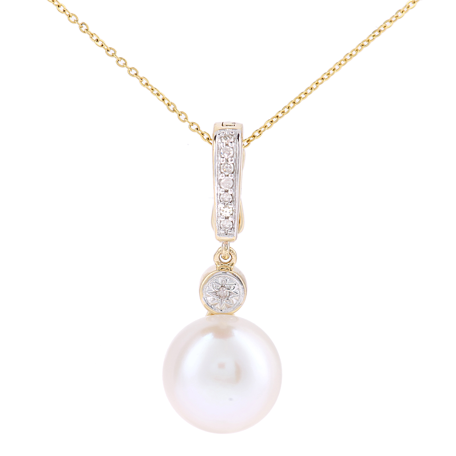 Diamant L'eternel Womens 9ct Yellow Gold, 0.05ct Diamonds With White Cultured Pearl Pendant - One Size