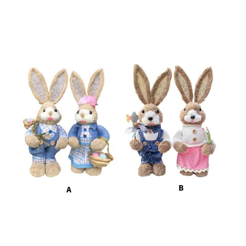 2 st påskstråkaniner Figurer Gårdshus Dekorationer Handarbete Stråkanin Skulpturer För Festival Bord Display