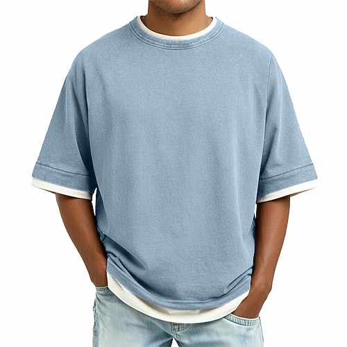 Per uomo Maglietta di cotone Camicia lavata Manica Corta Girocollo Estate Primavera Semplice Retrò Vintage Casual Angosciato Stile Vintage Lavato Casuale Blu Viola Grigio Maglietta Top per Uomo