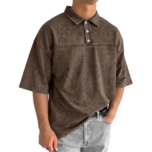 Per uomo Camicia lavata con acido Polo in Cotone Casuale Affari Colletto Polo a Coste Manica Corta Moda Essenziale Tinta unica Blocco di colori Bottoni Lavato Estate Primavera Primavera Autunno