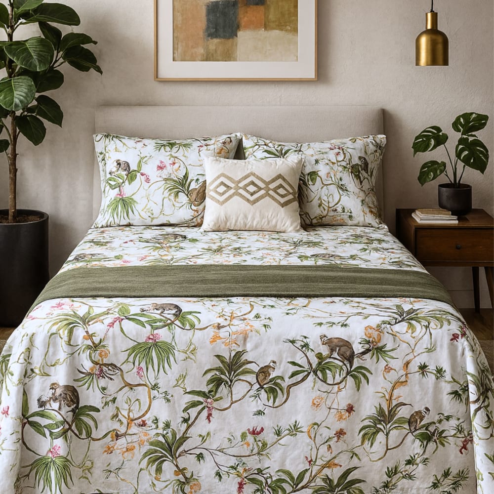 Set di lenzuola 4 pezzi 100% cotone stampa tropicale - letto 150 cm