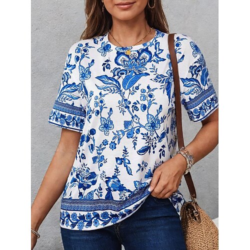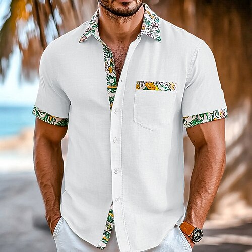 Per uomo Camicia Camicia di lino Camicia Estiva Abbigliamento da spiaggia Camicia con Bottoni Floreale Vacanza Crociera Giallo Rosa Blu marino Verde Manica Corta Colletto Estate Primavera Estate