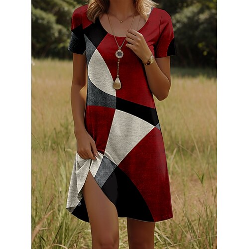 abito lungo da donna color block scollo a V mezze maniche estate
