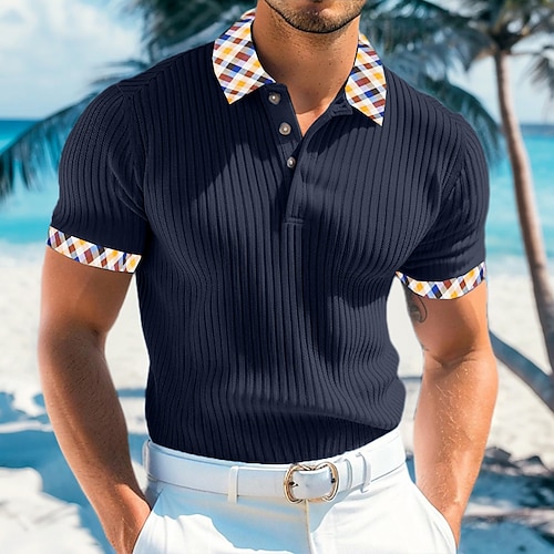 Per uomo Top a Maglia a Coste Testurizzato Lavoro Casuale Bavero Colletto Polo a Coste Manica Corta Essenziale Moderno Blocco di colori Bottoni Lavorato a maglia Estate Primavera Estate Vestibilit