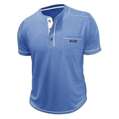 Per uomo Maglia Henley Maglietta Top Henley Manica Corta Tinta unica Semplice Moda Designer Casual Blocco di colore Bottoni Henley Casuale Quotidiano All'aperto Estate Primavera Primavera Estate