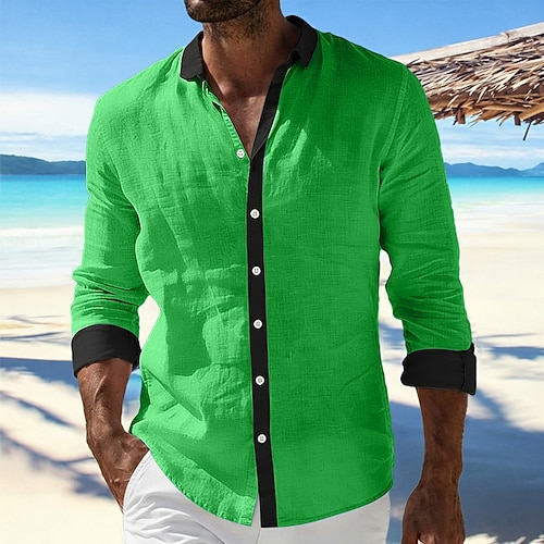 Per uomo Camicia Camicia di lino Camicia Estiva Abbigliamento da spiaggia Camicia con Bottoni Semplice Casuale Quotidiano Blu Viola Arancione Verde Manica Lunga Colletto Estate Primavera Estate