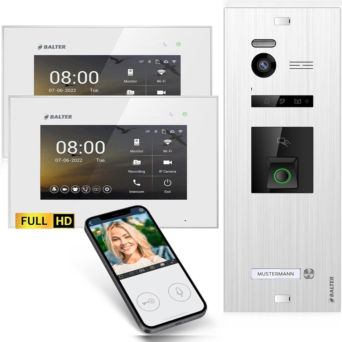 HD Video Türsprechanlage mit Fingerprint RFID und Smartphone App für 1 Familienhaus, 2x Monitore, Balter EVO HD Fingerprint