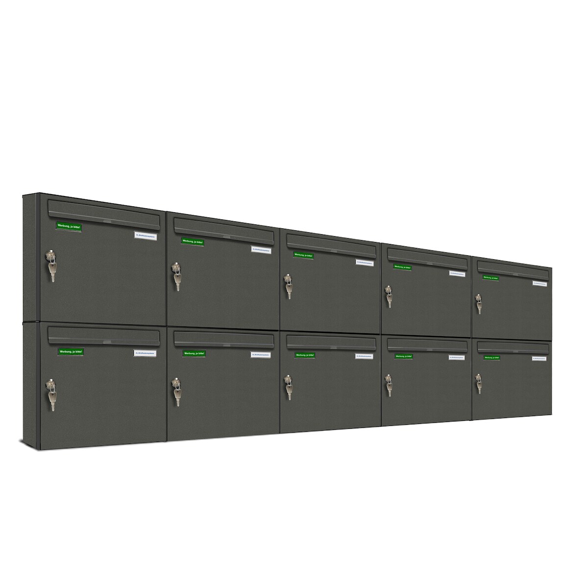 AL Briefkastensysteme 10 x Basic Wand Briefkasten DB Farbe 703 Eisenglimmer Grau für Post A4, wetterfest, Artikelnummer: 431P10EA5PDB703