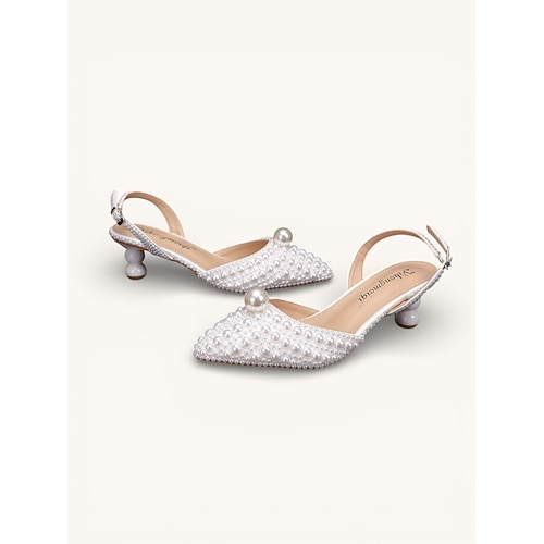 Scarpe da sposa con tacco basso e perle per la sposa – eleganti décolleté da sposa con punta affilata e cinturino alla caviglia