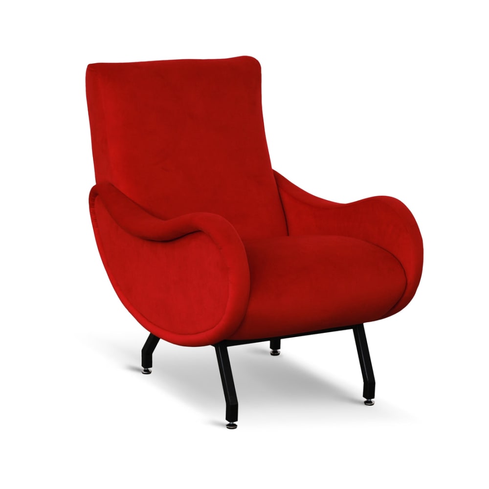Poltrona design vintage in velluto rosso gambe nere