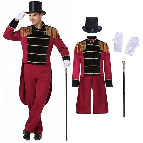 Carnevale 2026 Costume di Carnevale 2026 direttore di circo Carnevale Costume di fantasia Giacca da circo Retrò Vintage Vittoriano Stile militare Adulti Per uomo Natale Halloween Carnevale Feste