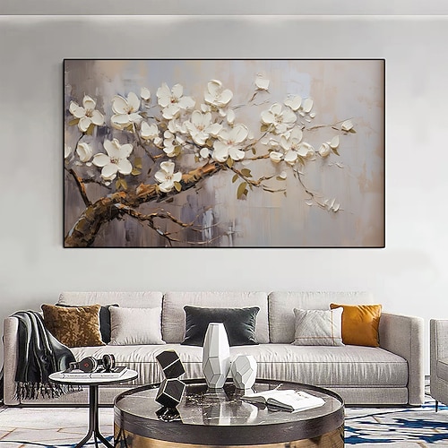 grande dipinto a olio fatto a mano con fiori di pruno su tela dipinto a mano astratto strutturato acrilico fiore bianco per la decorazione della parete del soggiorno