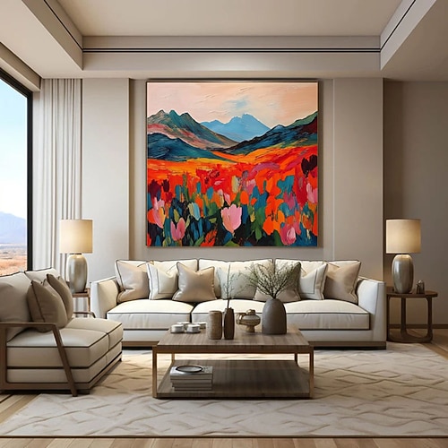 dipinto a olio dipinto a mano astratto fiore paesaggio dipinto a olio su tela grande arte murale originale arte di montagna colorata decorazione primaverile soggiorno moderno arredamento per la casa