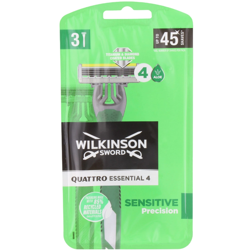 WILKINSON SWORD Quattro Essential Sensitive Precision - Rasoirs jetables 4 Lames - Lot de 3 Rasoirs