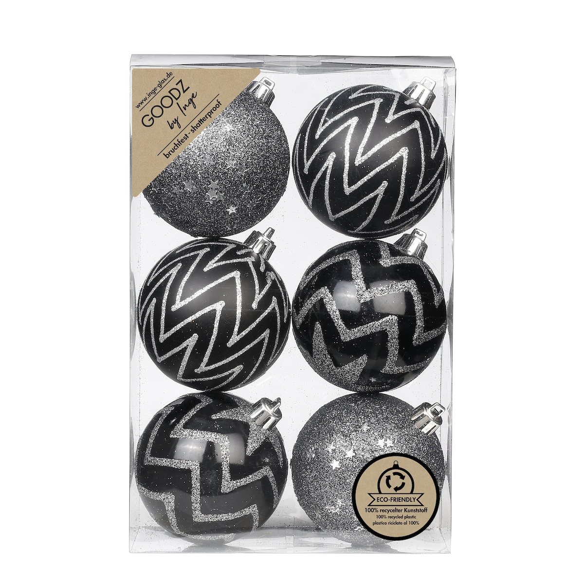 Inges Magic & Goodz 6 Weihnachtskugeln 8cm Kunststoff Christbaumkugeln Weihnachtsbaumkugeln schwarz