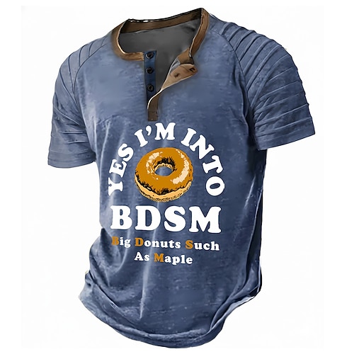 Per uomo Gergo divertente Maglietta Maglia Henley Manica Corta Designer Retrò Vintage Casual Casuale Quotidiano Streetwear Estate Primavera Nero Blu Verde Henley Maglietta Henley