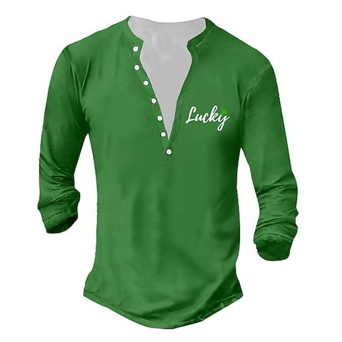 Per uomo San Patrizio Quadrifoglio Maglietta Maglia Henley Manica Lunga Vintage Designer Elegante Casuale Quotidiano All'aperto Primavera Primavera Estate Nero Bianco Verde Henley Maglietta Henley
