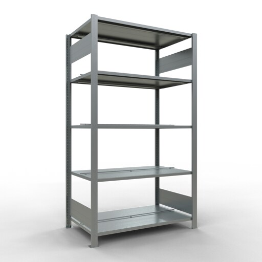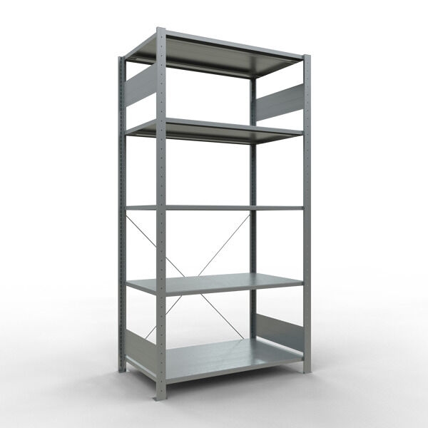 SCHULTE Lagertechnik Grundregal, Fachbodenregal Stecksystem MULTIplus150, 2000 x 1000 x 600 mm (HxBxT), 5 Fachböden, Kreuzstrebe, verzinkt - Expressline