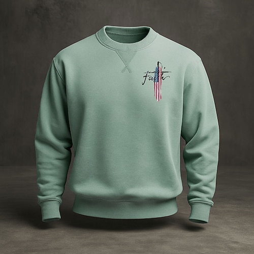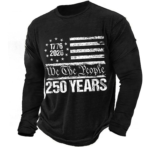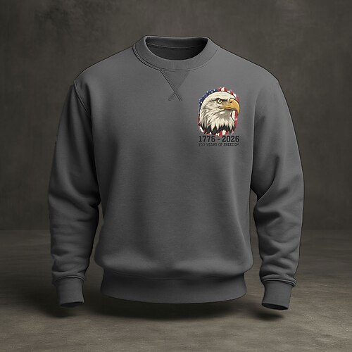 Felpa da uomo con grafica, bandiera americana, 250° anniversario, sportiva, moda, quotidiano, classica, girocollo, per attività all'aperto, vacanza, blu, nero, rosso, verde, stampa, primavera,