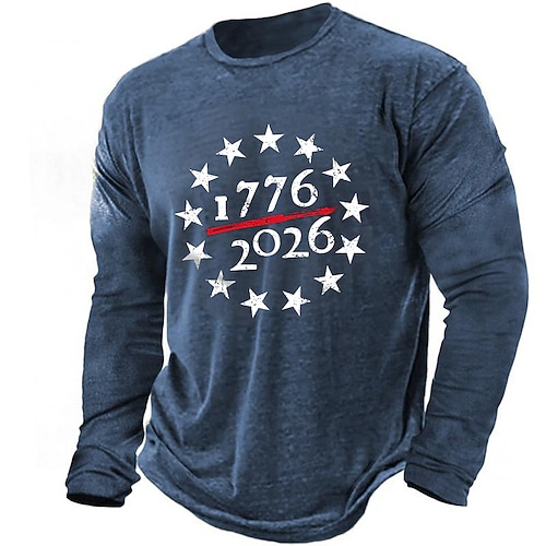 250° anniversario dell'America Per uomo 250° anniversario degli Stati Uniti Maglietta Manica Lunga maglietta Stampa 3D Girocollo Camicia Quotidiano Casual Quotidiano Viaggio Feste Blu Blu lago Nero