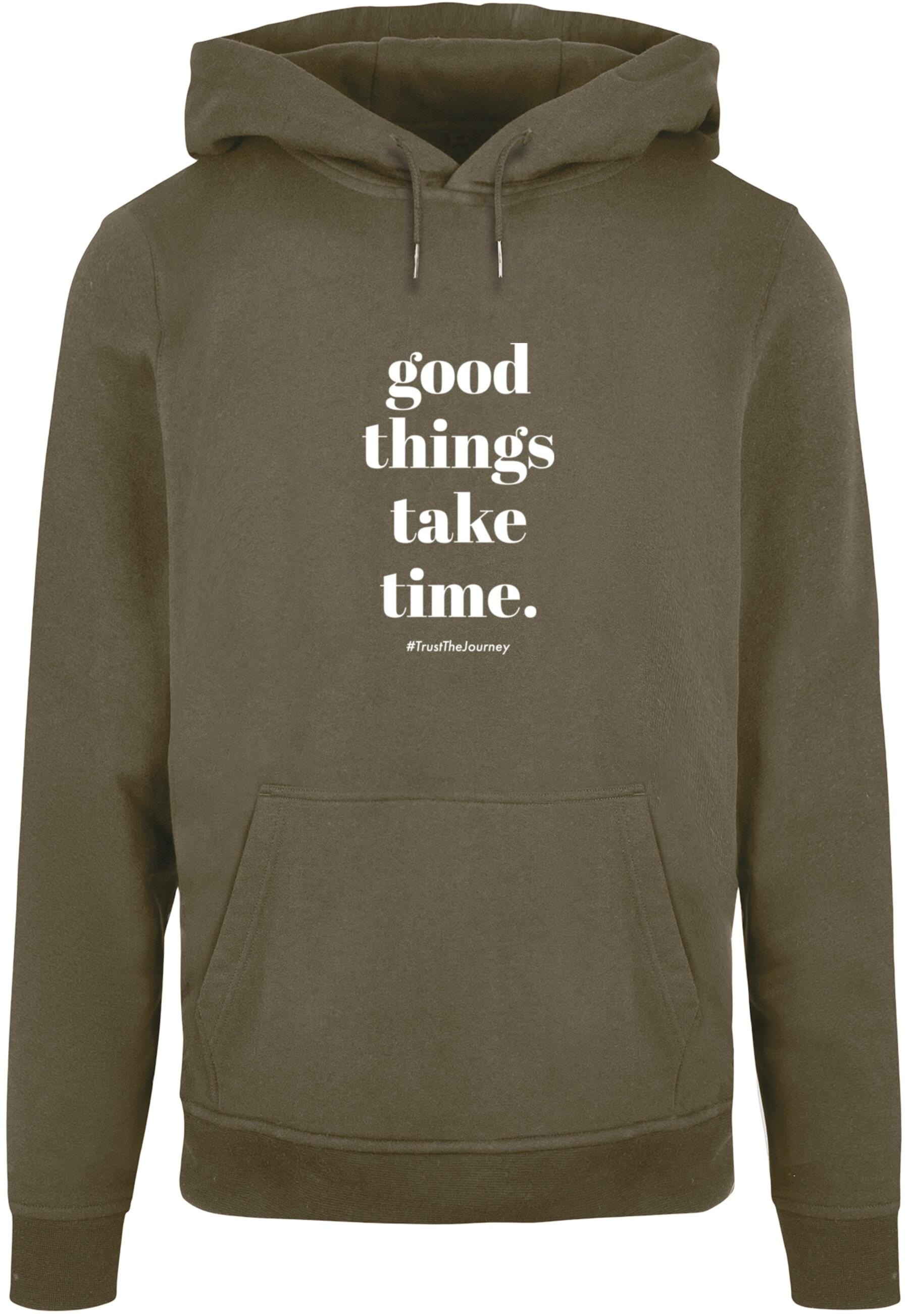 Kapuzensweatshirt MERCHCODE "Merchcode Herren Good Things Take Time Basic Hoody", Herren, Gr. 5XL, grün (olive), 50% Baumwolle, 50% Polyester, bedruckt, Langarm, Sweatshirts