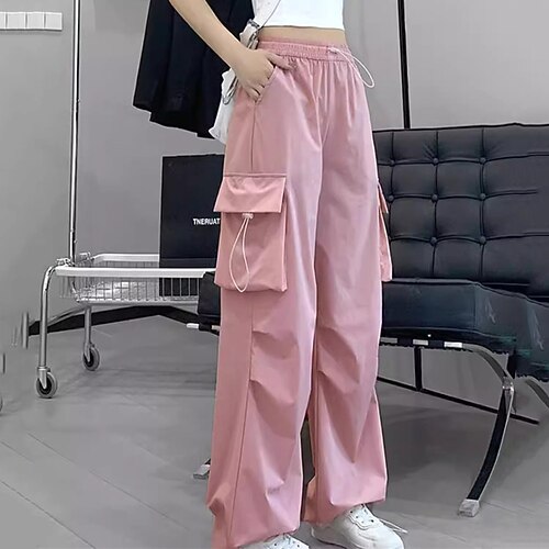 Per donna Pantaloni cargo Pantaloni Pantaloni larghi Di tendenza Vita bassa Tinta unica Tasche cascante Asciugatura rapida Anelastico Casual Nero Bianco Rosa Cachi Quattro stagioni Morbido