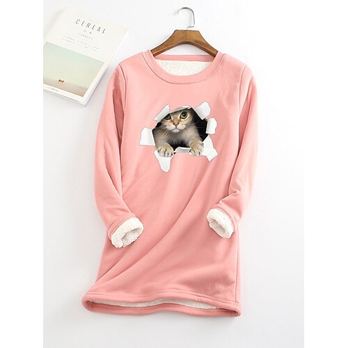 Per donna Pigiama felpato foderato in pile Gatto Caldo Morbido Manica Lunga Girocollo Top lunghi Casuale Sportivo Nero Giallo Rosa Rosa scuro Rosso Autunno Inverno