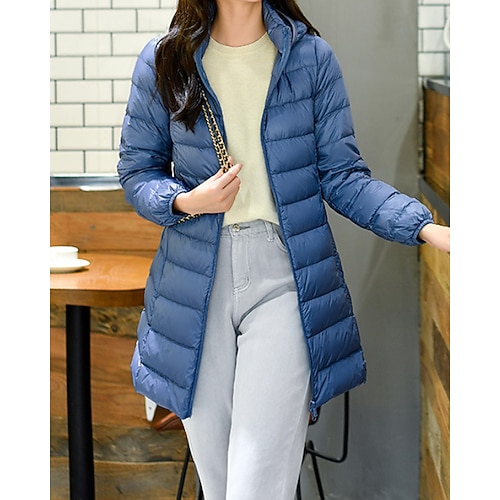 Per donna Giacca Piumino Cappotto Caldo Confortevole Cerniera Tasca Moda Semplice Ferie Casual Quotidiano Weekend Cerniera Lungo Con Cappuccio Vestibilità regolare Manica Lunga Capispalla blu navy