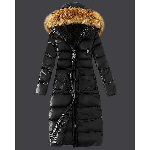 Per donna Cappotto Invernale Giacca Piumino Giacca con Cappuccio Caldo Confortevole Cerniera Tasca Collo in Pelliccia Casual Semplice Vacanza Abbigliamento quotidiano Uscire Weekend Lungo Con