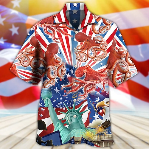 Per uomo Tropicale Polpo Camicia Camicia hawaiana estiva Camicia con collo camp Manica Corta Camicia Collo ripiegato Moda Designer Casual Streetwear Casuale Quotidiano Blu-verde Mare blu Giallo S M L