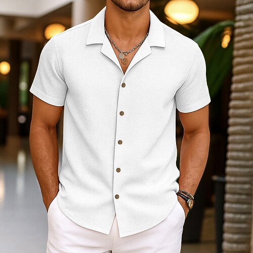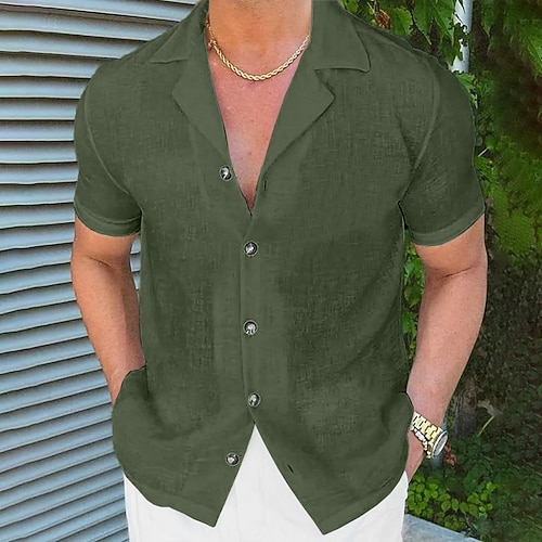 Per uomo Camicia Camicia di lino Camicia Estiva Abbigliamento da spiaggia Camicia con Bottoni Semplice Vacanza Casuale Nero Bianco Rosa Blu Manica Corta Collo Camp Estate Abbigliamento