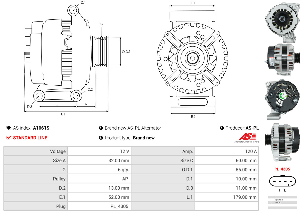 AS-PL Generator A1061S 12V 120A für OPEL 4811552 95519868 AC