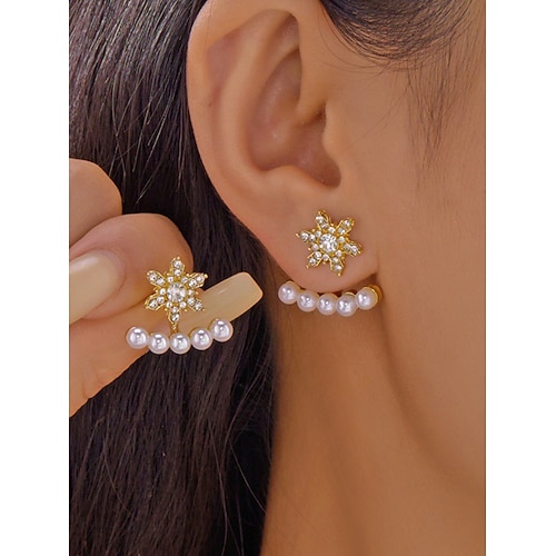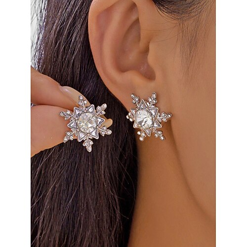 orecchini da donna a forma di fiocco di neve natalizio: materiali in lega e perle sintetiche, pietre festive rosse, verdi e trasparenti, perfetti per feste e regali