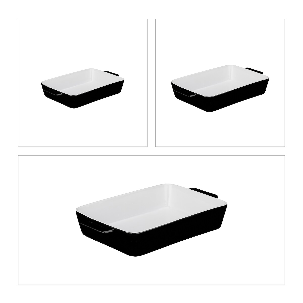Relaxdays Auflaufform Set, 3 Größen, eckig, Keramik, spülmaschinenfest, Ofenform, für Lasagne und Gratins, schwarz/weiß