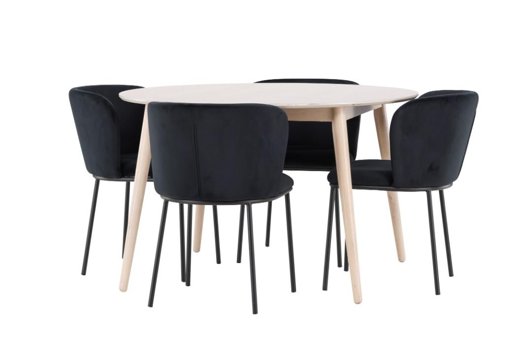 Essgruppe HELA "Ariana, Esstisch mit 6 Stühlen, ausziehbarer Küchentisch", schwarz (weiß, bezug waterfree schwarz, schwarz, schwarz), Einlegeplatte, Bezug Webstoff waterfree, Sitzmöbel-Sets, Essgruppe, Tisch 120-160cm, 6 Stühle mit hoher Belastbarkeit