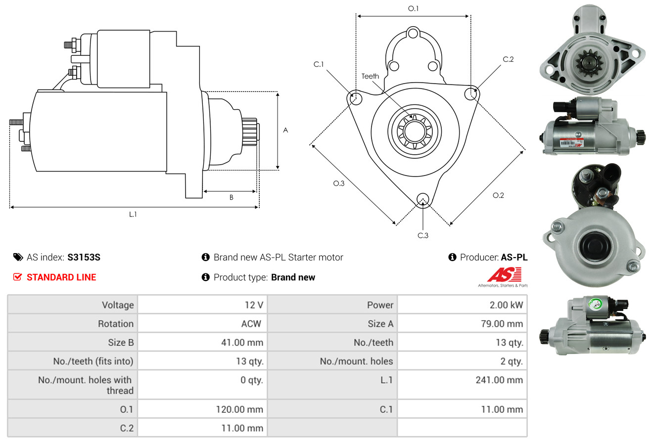 AS-PL Starter 12V für VW 2E911022C 02E911023T 2E911024H S3153S