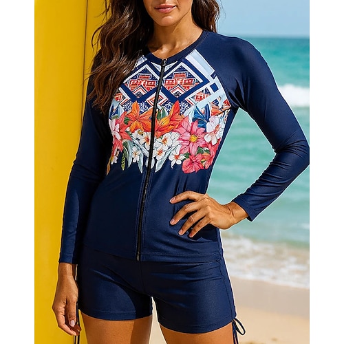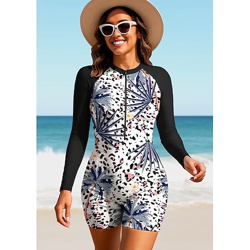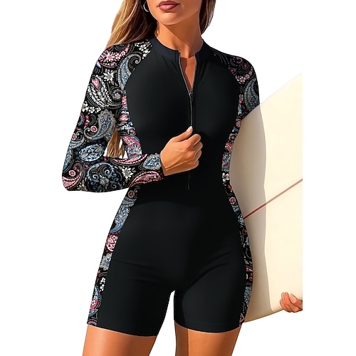 Per donna Top sottomuta Costume Intero Floreale Stampato Asciugatura Rapida Leggero Traspirante Manica Lunga Body costume da bagno Cerniera Frontale Surf Spiaggia Sport Acquatici Estate