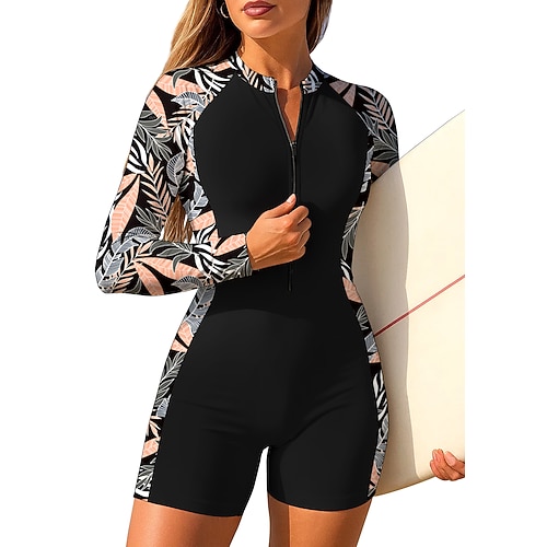 Per donna Standard Top sottomuta Costume da bagno Costume Intero Floreale Sfumatura UPF50 Protezione UV Elastico Manica Lunga Costume da Bagno Body con reggiseno incorporato Cerniera Frontale Surf