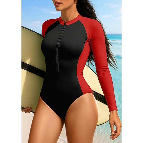 Per donna Top sottomuta Costume da bagno Costume Intero Patchwork Protezione Solare UV UPF50 Manica Lunga Costume da Bagno Con zip Surf Nuoto Estate